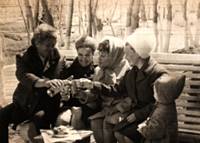 Сопка с пограничным столбом.Моисеева, Анисимова, Бухарметовы 1984г. Моисеева (Дмитриева) Светлана